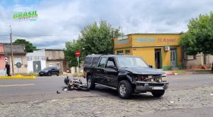 Acidente de trânsito entre camioneta e moto deixa motociclista ferido na linha divisória 8 de março de 2024