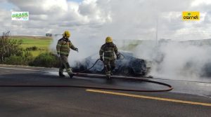 Veículo é consumido pelo fogo na BR-158 próximo ao Cerro de Palomas em Livramento 17 de julho de 2024