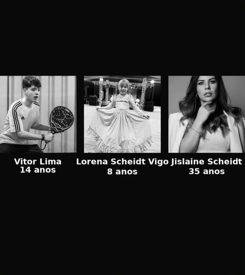 Vitor Lima, 14 anos – Atleta das categorias de base do Lagoa Esporte Clube, era filho de Rogério Furlan Lima, esposo de Jislaine. Também fazia parte do Grupo Arte Nativa.