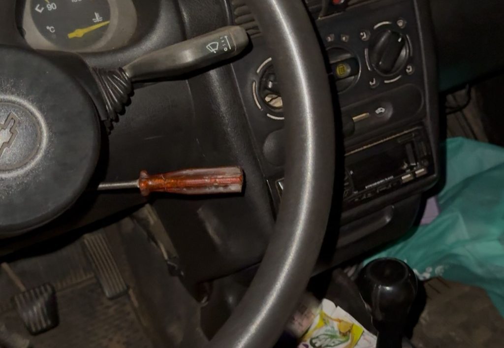De acordo com as informações, a guarnição foi acionada após moradores perceberem o veículo estacionado de forma suspeita. No local, os policiais constataram que o carro estava com a ignição danificada e sendo ligado por meio de uma chave de fenda — indício do modo de ação dos criminosos.
